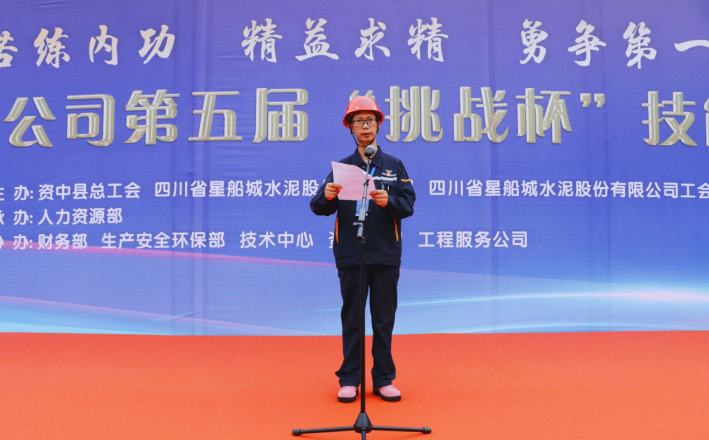 參賽選手代表袁理宣讀倡議書(shū),要做技術(shù)“好漢”、“硬漢”和“癡漢”,不斷汲取新技術(shù),練就新技能,敢于技術(shù)創(chuàng)新,力求技術(shù)突破,奮力為川威水泥可持續(xù)發(fā)展奉獻(xiàn)力量。